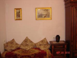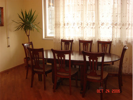 | Description : | A 6-room apartment is for rent at the centre of Yerevan at Sayat-Nova str. on the 3rd floor of a stone building. Permanent hot and cold water, gas, Baxi system, electric and gas stoves, fast Internet connection, a washing machine,a dishwasher, a refrigerator, a microwave oven, kitchen utencils, 2 bathrooms, 2 toilets, jacuzzi, bidet, heaters, air conditioners, satellite antennas, 2 telephone lines, 4 bedrooms, bed linens and towels,3 private balconies,a garage are available. This fully furnished four bedroom apartment is located in the very centre of Yerevan on Sayat-Nova street. Good for family stay or other purposes. All Yerevan conveniences such as various shops, clubs, cinemas, restaurants, open air cafes, museums,theatres, opera house, parks are within a short walking distance from this unit. The apartment accommodates 13 and more persons and can be taken for rent for short or long periods of time. |