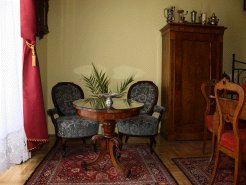 Open all year, check-in on agreement. We are always reachable by mobile phone for assistance. The apartment is about 55 sqm on the 1st floor, with hall, kitchen, bathroom, 2 rooms and balcony of 10 sqm. The smaller room is equipped with 2 single beds. Beds are new and furniture is original 19th century style furniture what giving authentic impression of the apartment. Bigger room has double bed and one single bed can be added. Apartment has very nice 10 sqm balcony and in bigger room from 19th century very rear original decorative plaster. Around the building are a lot of restaurant and shops. Also some shops are open 24 hours.