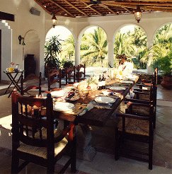 | Description : | The Casa Piazza luxury villa rental will make your vacation fantasy come true. Enjoy a striking blend of Mediterranean and Mexican style in the peaceful and natural setting at our luxury villa rental at La Punta in Manzanillo, Mexico. The villa is a stunning 8000 square foot multi-level blending of Mexican and Italian Mediterranean architecture. This luxurious vacation home has sculpted grounds, a tiled swimming pool, two separate villa palapas (outdoor living areas), including a rooftop palapa with a kitchen, wet bar, dining area and jacuzzi. At every turn you'll find striking views, comfort and style, balconies and large windows that admit the cooling sea breezes. The rental villa will easily accommodate ten guests for your vacation. The outdoor dining pavilion seats 12 guests adjacent to a modern, fully equipped kitchen with luxury gourmet appliances. The Casa Piazza luxury vacation villa is dedicated to making your vacation perfect in every respect. • Villa Staff includes chef, manager, houseman, and 5 star daily housekeeping • Controlled, 24 Hour Security • Offsite administrator • Total living area 8000 square feet. • Main house & casita have total of 5 bedrooms and 6-1/2 bathrooms. • Rooftop palapa w/kitchen, wet bar, dining area, Jacuzzi. • Tiled heated swimming pool 3.5 to 5 feet deep. • Poolside lounging area w/ chaises, chairs, outdoor dining pavilion. • Each bedroom has a private balcony, luxurious King size bed, air conditioning and ceiling fan. • Chef-prepared meals to your taste included (you pay food & beverage costs only). All meals prepared on-site, your special dietary needs graciously accommodated. • Purified water system throughout. • Satellite tv, Sirius radio, DVD player, video library, internet email, direct phones, book library, games, ping pong table, croquet, darts, fishing poles, snorkel equipment and more. Created by owner Scott Piazza, and Italian designer Paolo Cressini, the Casa Piazza luxury vacation rental villa is spacious and airy, designed for relaxed tropical vacationing and lively entertaining. Unusual and well-thought-out touches catch your eye everywhere in the Villa, like custom made hardwood furniture, Mexican tile work, American antiques and Malaysian chairs. Some beds are adapted from antique farmhouse doors and the floors are tile, hand-peened brick and stone. The sprawling living and family rooms are perfect for relaxation with comfortable sofas, satellite tv's, vcr/ DVD player, a film library, games, ping pong table, books and recreational diversions galore. Up on the 1600 square foot rooftop terrace, life is good as you watch the afternoon slip into evening and enjoy after-dinner drinks. The Manzanillo area in the Mexican Pacific Riviera has a rich cultural history and a wide variety of different activities during your luxury vacation, including golf, tennis, luxuirious beaches, fishing, tours, hiking, road and mountain bike rental and tours, horseback riding (beach and mountain,) off-roading, waverunners, SCUBA and snorkeling and more. Rates start at $8400 per week, for 7 day rental. Ask us about our 2 & 3 bedroom rates (rates on request). 10 day rates on request as well. Occupancy 12 people, or 10+ children. Perfect for family vacation. Phone (650) 703-9480 Scott Piazza, www.casapiazza.com |