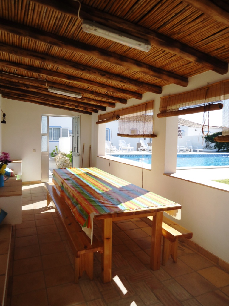 | Description : | Remodeled Villa with 5 bedrooms, fireplace, pool, garden and private parking, located in a quiet area and a lot of privacy, with a terrace that offers a wide view of the surroundings, located in Sesmarias, near Albufeira, at 1400 m from the beach. The quiet and picturesque area of Sesmarias located on the famous coastline of the Algarve, the southernmost region of Portugal, surrounded by beautiful scenery of blue sea and preserved natural areas within the zone of Albufeira, offers a wide variety of beaches in the area from the extensive sandy beaches of Sao Rafael, Gale to the beaches of Evaristo and Castelo hidden among rocks and cliffs. A few minutes drive you will find the Salgados golf course and a wide variety of sporting facilities available in the various beaches. There will entertainment for an active holiday, from the Slide & Splash water park (the largest in Europe), Zoomarine and all the attractions of Albufeira, as the vibrant nightlife. Description: Sleeps 11. 5 Bedrooms: 2 with double bed, 1 suite and 3 with 2 single beds, 2 en suite, one of which has access to the outside door of a sofa bed. 5 Bathrooms: 1 service abroad and serves as a support to the pool area and recreational, 3 with shower and one with bath. Open space living room and kitchen - separated by an arch, living room with fireplace, sofas, television with satellite service and DVD. Fully equipped kitchen with dishwasher, toaster, blender, refrigerator with freezer, coffee bag, oven and gas hob, electric juicer, microwave and kettle. Washing machine outside in the courtyard area. Dining room with table and chairs for 11 people. Portable ventilation in all rooms. Simply and comfortable decoration. Barbecue area with washing dishes. Stone table and benches for dining in the garden. Leisure room overlooking the pool and garden, with benches and wooden table and fridge with freezer. Swimming pool with shower and sun loungers, parasols, sun support. Lawned garden, with table, stone benches and umbrellas. Do not allow pets. Outdoor secure parking. Clean x 1 p / week. Distances: Beach: 1400 m | Golf: 1 km | Airport: Faro - 30 kms | Restaurant: 500 m | Supermarket: 200 m Health Centre / Hospital: 10 km – Albufeira | Next City: 10 kms – Albufeira |