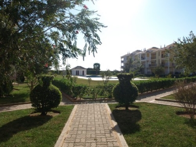 The kitchen is fully equipped and a good size. From the lounge, equipped with satellite TV (English-language channels) and comfortable sofas and dining area, you can step out onto a big private terrace. This terrace overlooks the pool and garden area, has a built in barbecue and a table and chairs for al-fresco dining. The apartment is on the ground floor, and there is some privacy because it forms part of an enclosed condominium which has a lovely big communal garden with adults’ and children’s pools. It is surrounded by a large hedge so it is secluded and when you’ve been out and about on the beach or exploring the local area you know you can come back to the tranquillity of these gardens to relax, sunbathe and swim. All in all a lovely setting for beach side holidays |