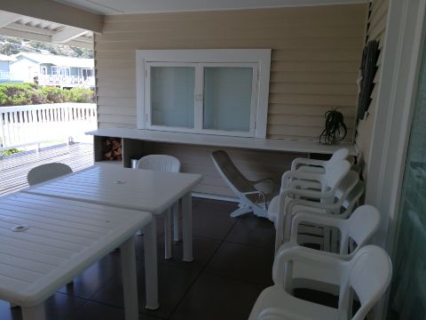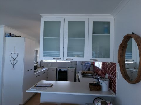 | Description : | This beautiful beachfront accommodation with its own footpath to the beach. This is a Blue flag beach with lifesavers. The house offers the following: Open plan kitchen, dining area, and family room that has a flat-screen TV with DSTV connections. The DSTV can be activated for a fee of R30 per day. Own decoder, smartcard & remote can be used. Two bedrooms with linen, please bring your own towels. One Bathroom - Shower & Basin, separate toilet with basin. The living/dining area walks out onto a deck with a full view of the ocean. The kitchen is equipped with a dishwasher, gas stove, double door Fridge/Freezer. The entrance to the house is via the kitchen door. We regret there is no washing machine, nearest Laundromat at De Dekke Spar in Great Brak. The dining area has a view of the ocean and an extra bar fridge. At the back of the house on the mountain view side is a stainless steel built-in braai with patio furniture the deck wraps around the house up to the main bedroom with the Seaview. The main bedroom has a sliding door that walks out onto the front deck. The second bedroom has a mountain view. No Smoking Allowed in the house. No Pets allowed. Alarm & Beam System. 1 Parking behind a gate, the other parking has covered shaded parking. Safe neighborhood. Exit Cleaning Fee of R850. |