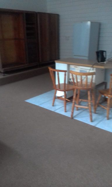 | Amenities : | Open plan lounge, bedroom and kitchen Bathroom with a shower, toilet & basin Loose stand wardrobes x 2 2 plate stove & oven combo Double door fridge. |