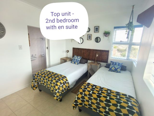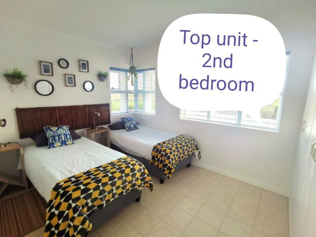 | Bed Configuration : | UNIT 1 - Top Level Main Bedroom - King Size - Seaview 2nd Bedroom - 2 Single beds with an en-suite bathroom. All linen supplied Please bring your own beach and bath towels. |