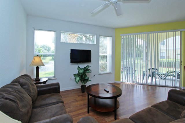 | Amenities : | The open plan design to the living area makes it a light and airy environment in which to sit back and relax after a long day of excitement and adventure. There is a comfortable lounge area complete with leather sofa's and a wall mounted flat screen TV. The living area also has direct access to a private lanai through sliding glass doors, allowing you to enjoy breakfasts outside enjoying lakeside views. The dining area is located between the kitchen and lounge.It is furnished with a dining table and seating for up to 6 guests. The light, bright kitchen area is fully fitted with all of the modern appliances you'll need in order to enjoy a stress free holiday. |
