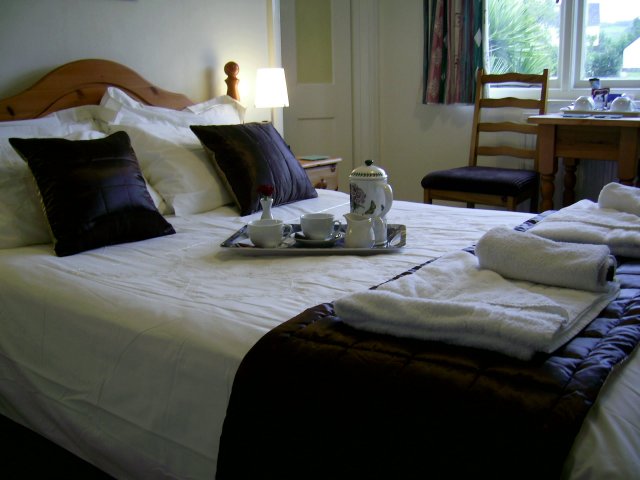 The accommodation consists of 3 double rooms, 1 twin room and 1 two room family suite looking out over the Sterridge Valley or The Village. All rooms are en-suite and are decorated and furnished to a high standard through a policy of continued improvement. Each room has tea and coffee making facilities, remote control television, alarm clock/radio and hairdryer. Refrigerators with fresh milk are available to guests on both landings.